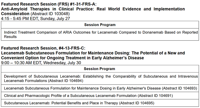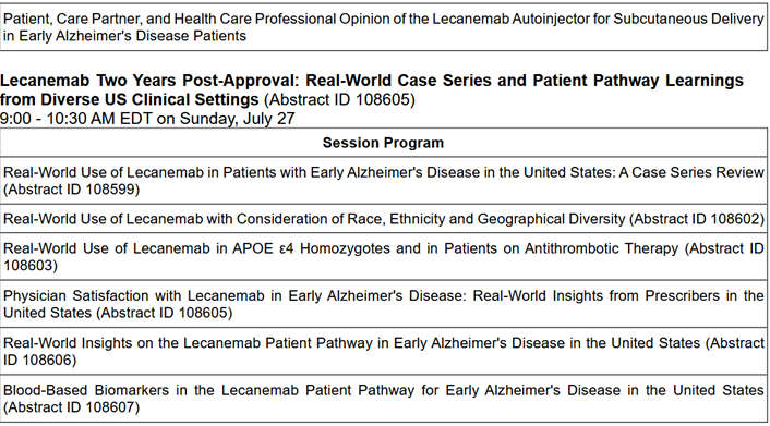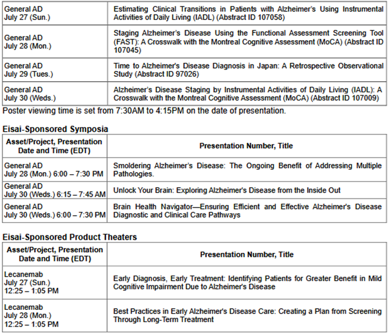 卫材将在2025年阿尔茨海默病协会国际会议上公布仑卡奈单抗连续治疗四年的疗效与安全性数据
