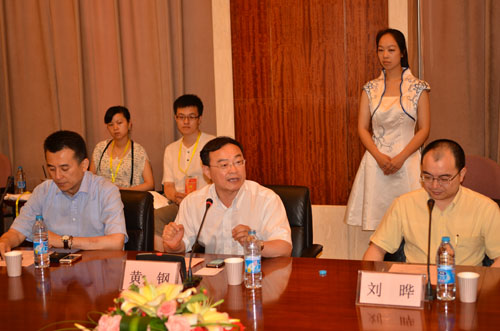7月5日上午9时由医学院学工部、团委联合举办的“卫材青年菁英培训营开营仪式暨2011年度卫材药业奖学金颁奖仪式”在医学院附属瑞金医院科教楼201会议室顺利举行。出席本次活动的有上海交通大学医学院副院长黄钢、卫材(中国)药业有限公司总经理刘晔,肿瘤事业部部长周利文,医学部高级经理王长春,学工部部长唐华、团委书记朱建征,以及三十余名医学院优秀学生代表。会议由医学院团委书记朱建征主持。