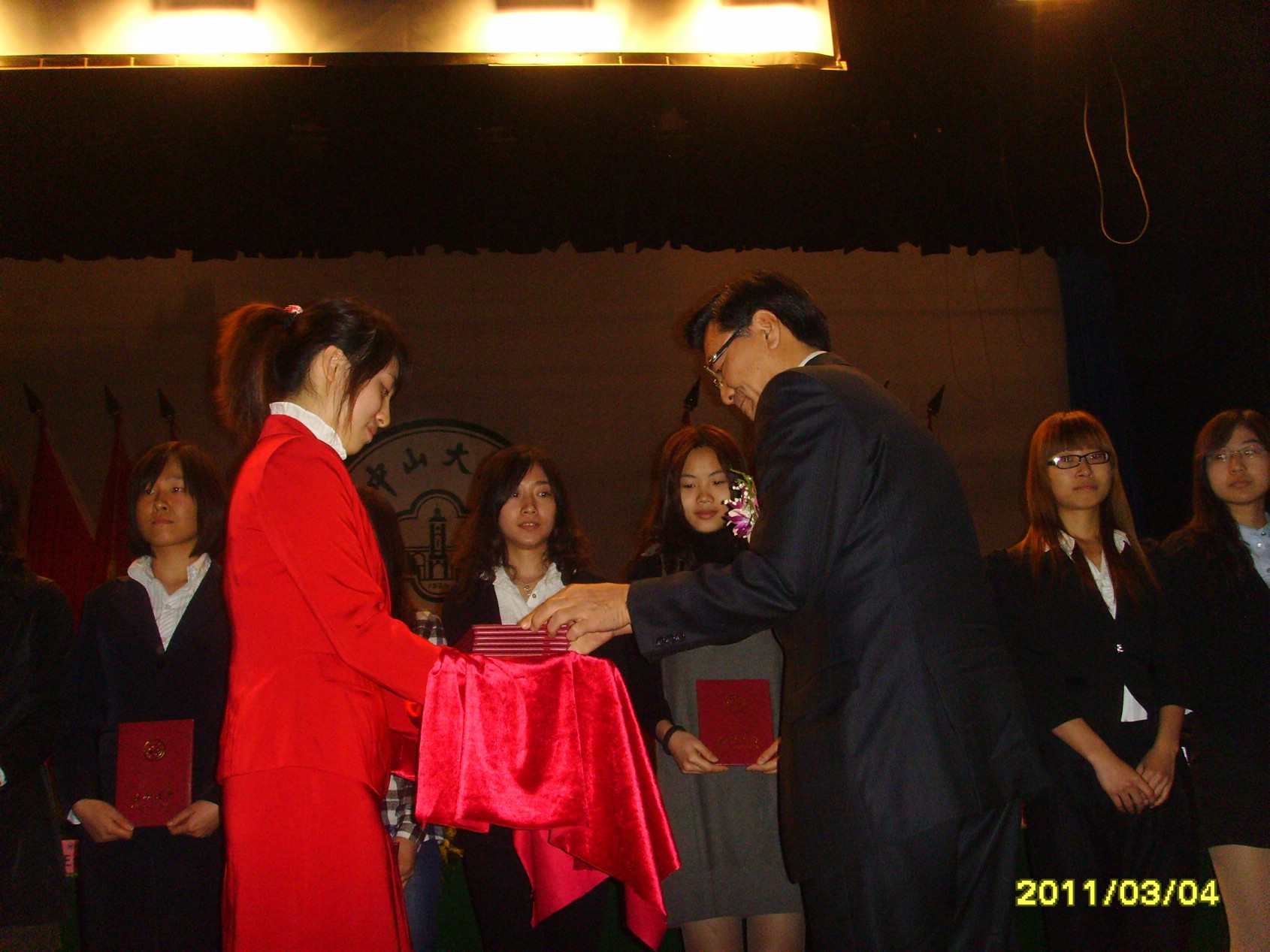 来自07级预防专业的陈燕作为学生代表发言。她不仅针对之前黄钢院长提出的医学生的责任心提出了自己的见解,更是总结了自己大学五年来的收获与积累,表达了将借奖学金所提供的机遇进一步为社会、为医学事业提供自己的绵薄之力。